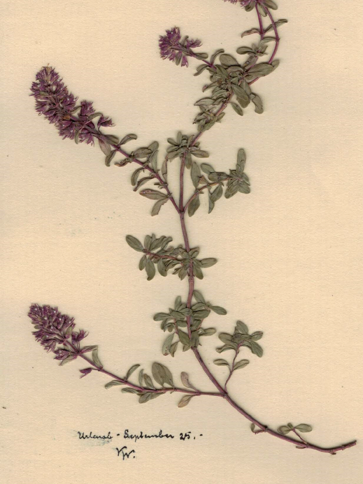 Die Mappe enthält Poesiesprüche eines Karl Wieland wunderschön auf Büttenpapier geschrieben und mit gepressten Pflanzen verziert.