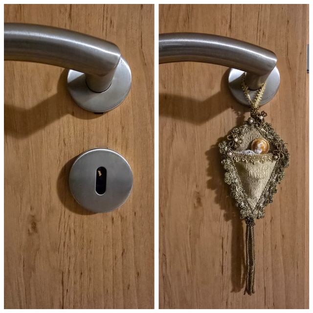 Dieses Stück hängte man am Heiligabend von innen an das Schlüsselloch der Stubentür, um den Blick auf das Christkind vor neugierigen Kinderaugen zu verhindern.